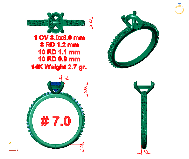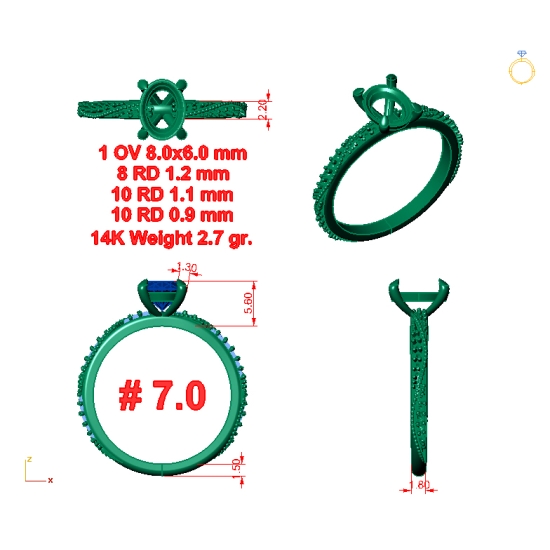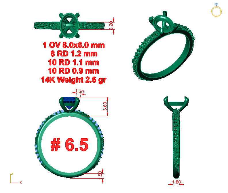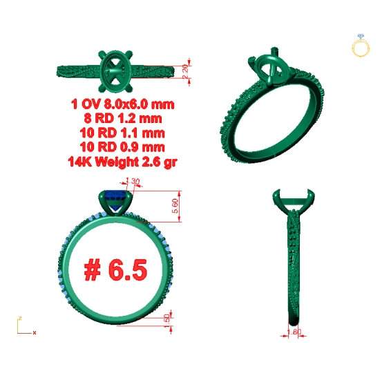 Oval 1 x 8.0x6.0 mm.